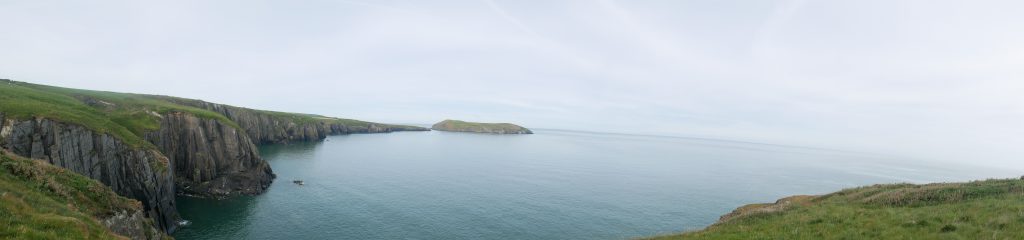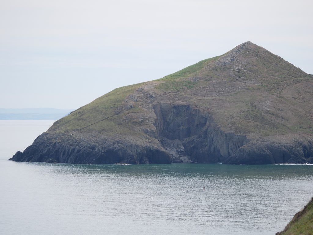 It’s a lovely day, bright and sunny and although Gwbert is quite small it warrants a rather posh looking hotel on its edge as I turn the corner and start walking uphill to re-join the coast path. Its a lot of tarmac initially and the coast is some distance away. It’s not untill I have crossed three fields that I am what I would determine as ‘on the coast’ After that Cardigan Island is in all tthe photos therafter !