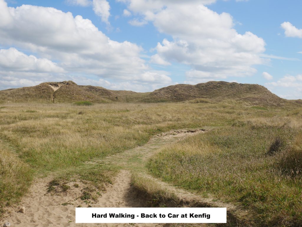 I turn off here to get back to Kenfig nature reserve after a pleasant walk some intersting conversations and a warm sunny outing.