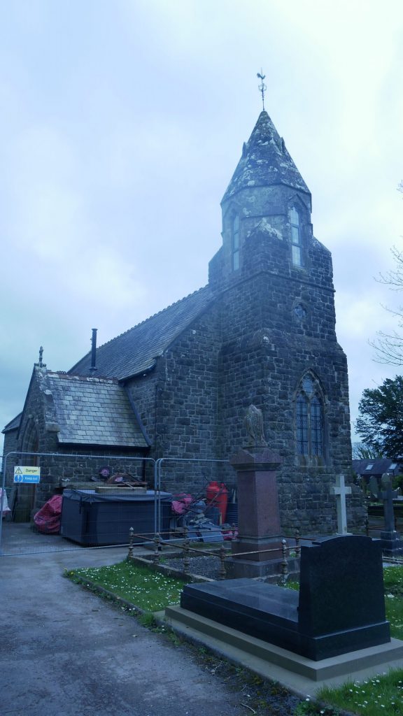 We sit on a bench next to an ancient looking church that somehow doesn’t seem to be used as such anymore ! We assume this from construction going on , a fenced of hot tub and a white van parked outside which seems to be attracting the insects thriving in the near vicinity.