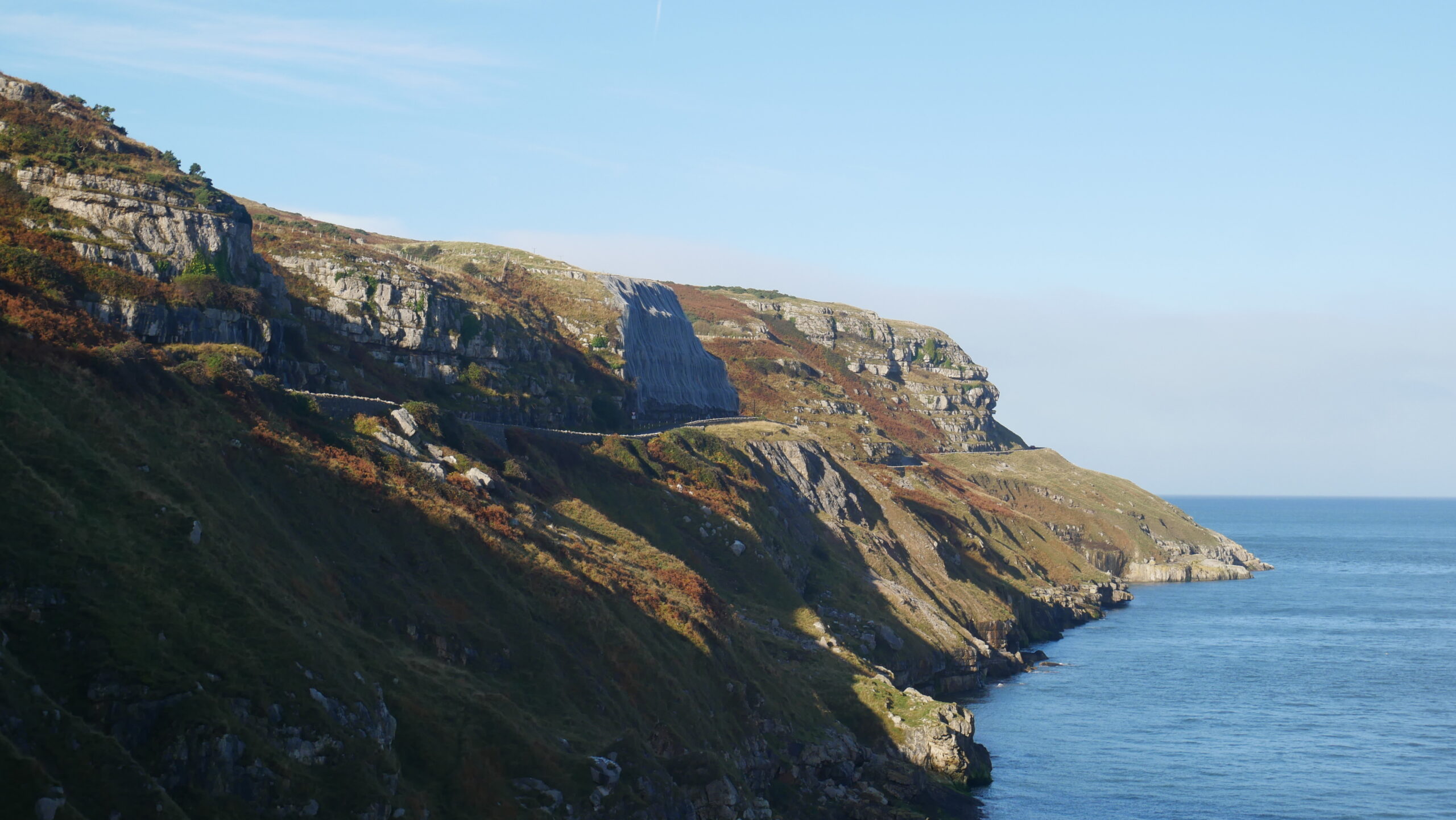 It’s a bright day, no breeze and as yet the sun has not cleared Great Orme. We head out down the East side. It’s an empty road bar the occasional cyclist or runner.