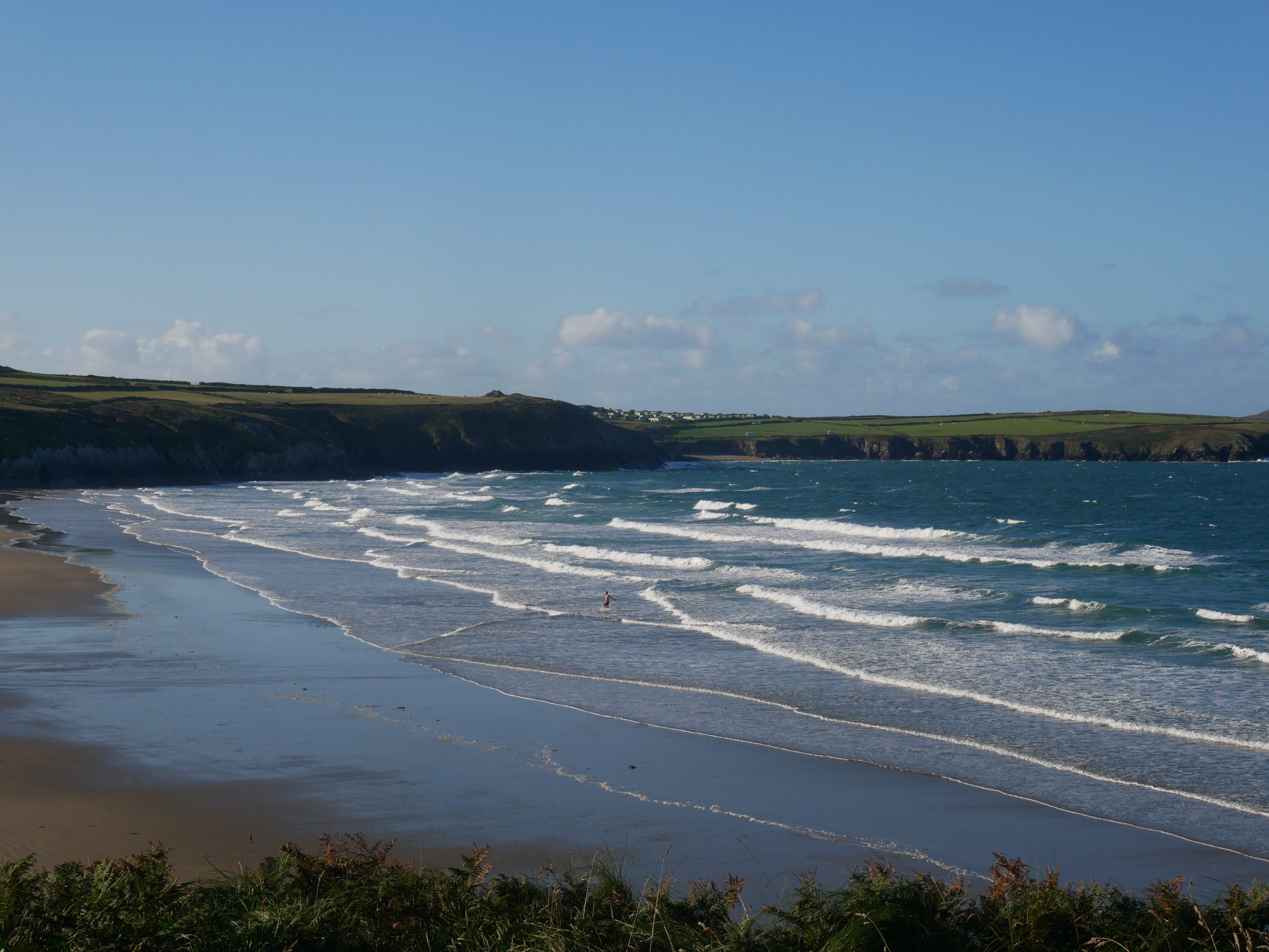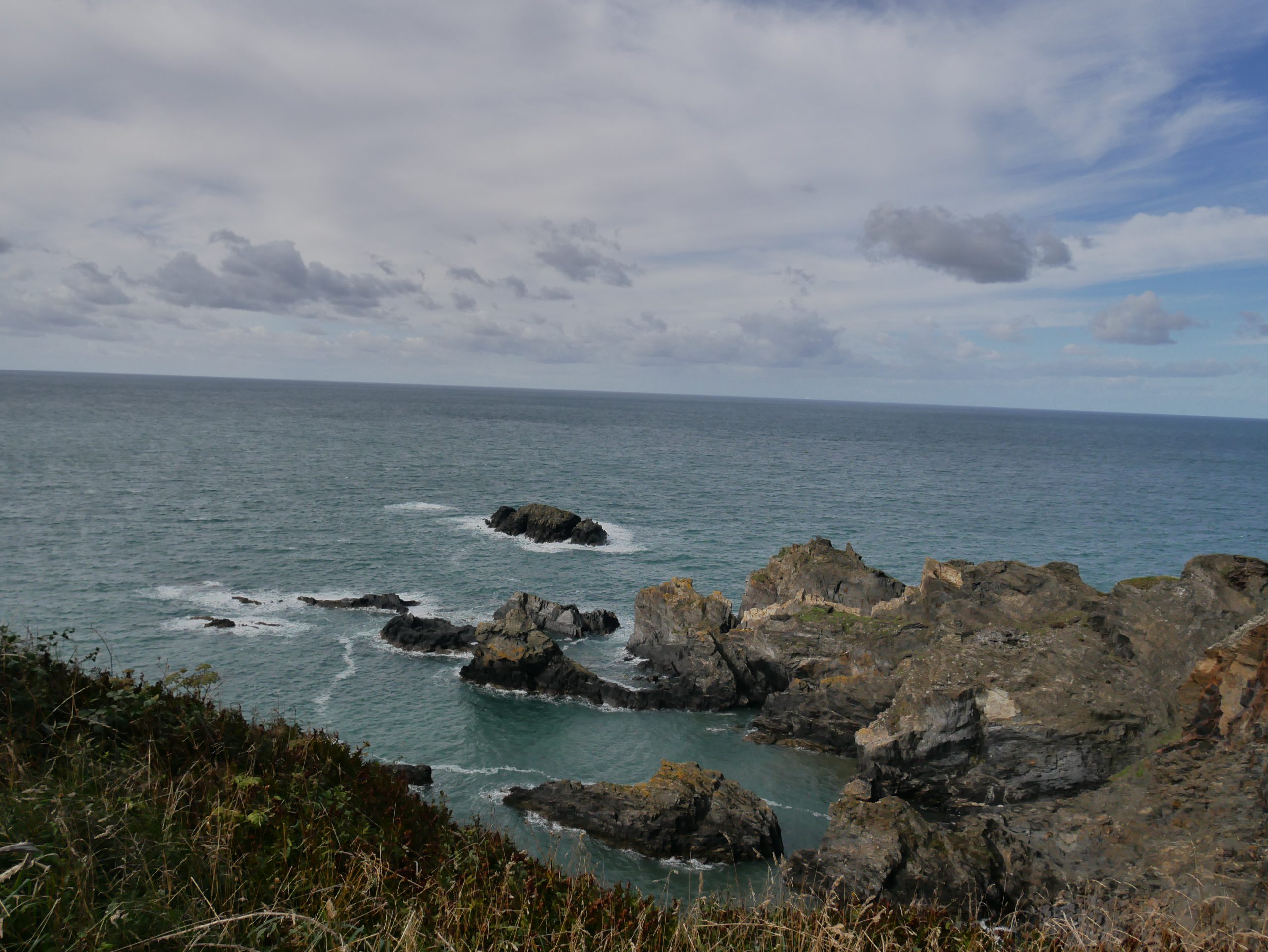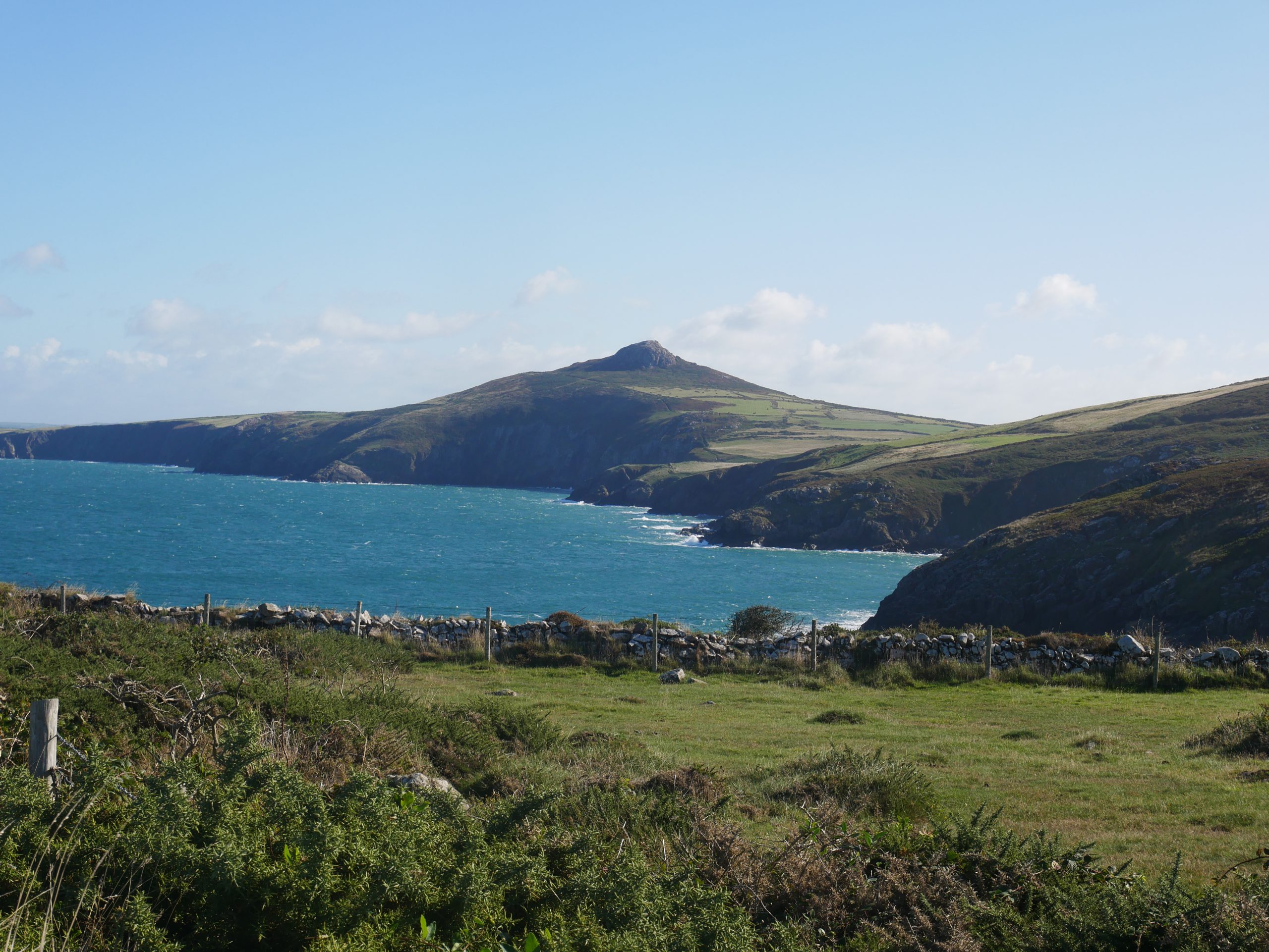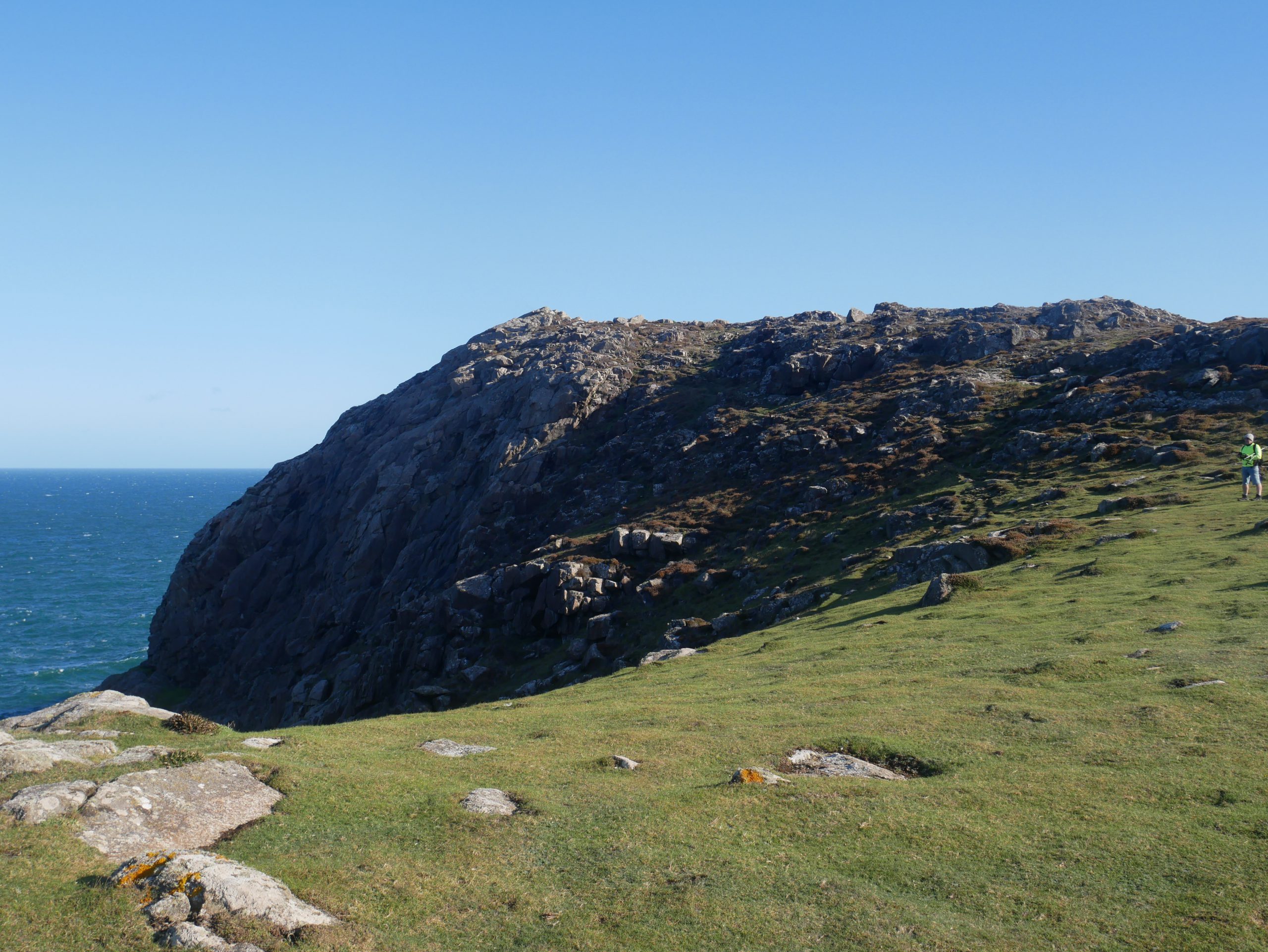 What a great view it is, as I head gently uphill from Whitesands and enter a wide expanse of rocky hillocks preceding what looks like a rugged cut through the landscape by the coast path.