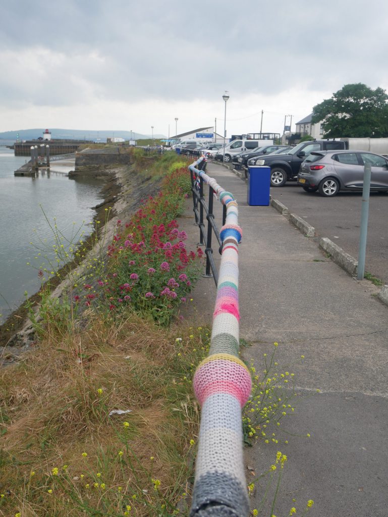 We have walked “The Millenium Way” and have arrived at Bury Port, There is ahistory board and the ‘Yarn Bombers have been active,