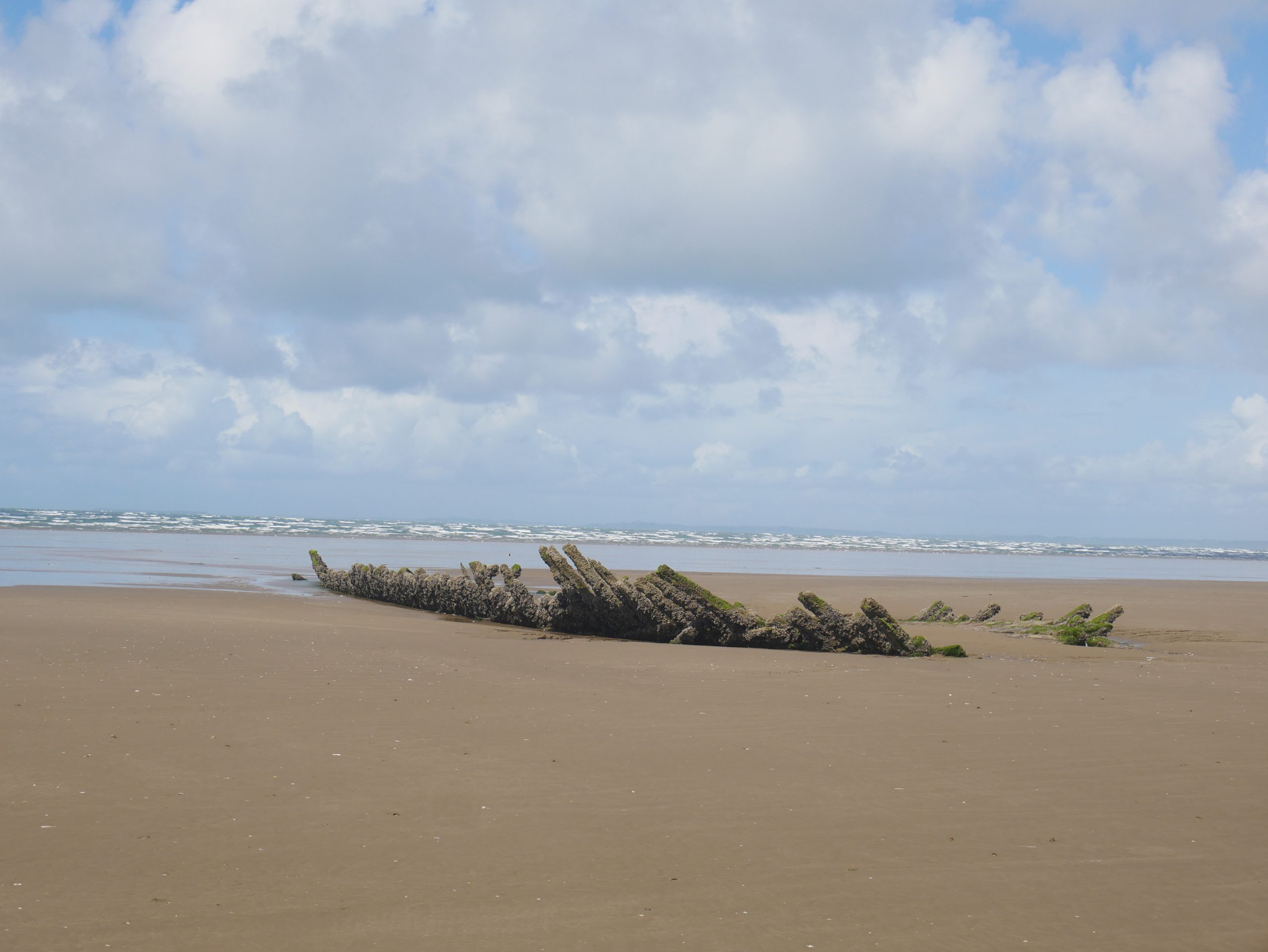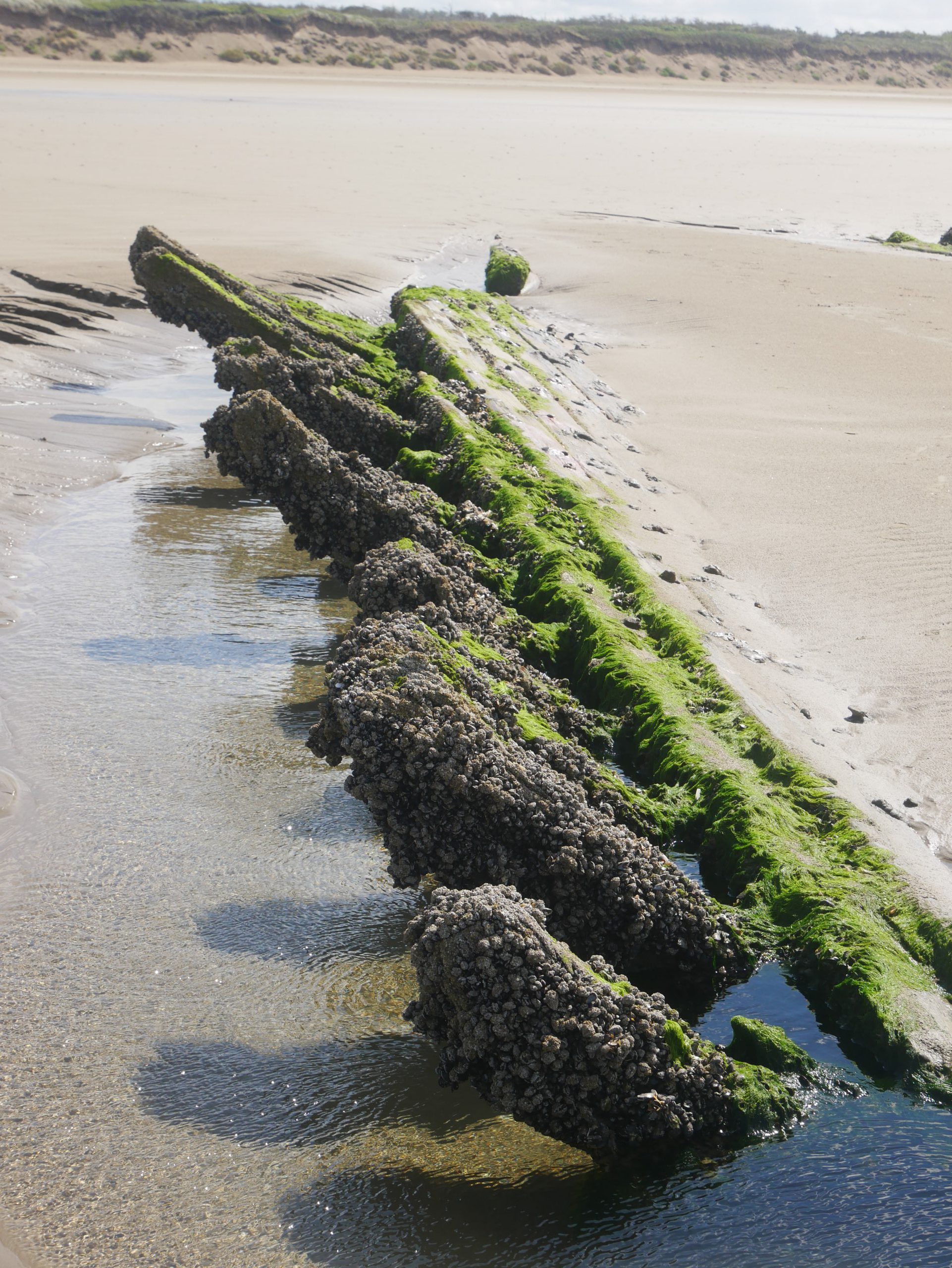 Its a massive beach and we trundle westward walking steadily for probably a good hour before turning off toward Pembrey woods. Along the way we see old carcases of ‘boats long forgotten’ and the white capped waves indicate the strength of the breeze coming inshore.