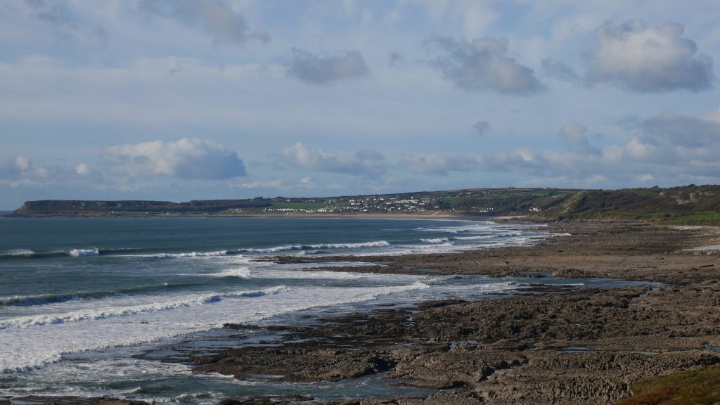 Its a beautiful day, the breeze is ‘healthy’ as ‘breakers’ come ashore. Port Eynon is in view and I am probably half way ?