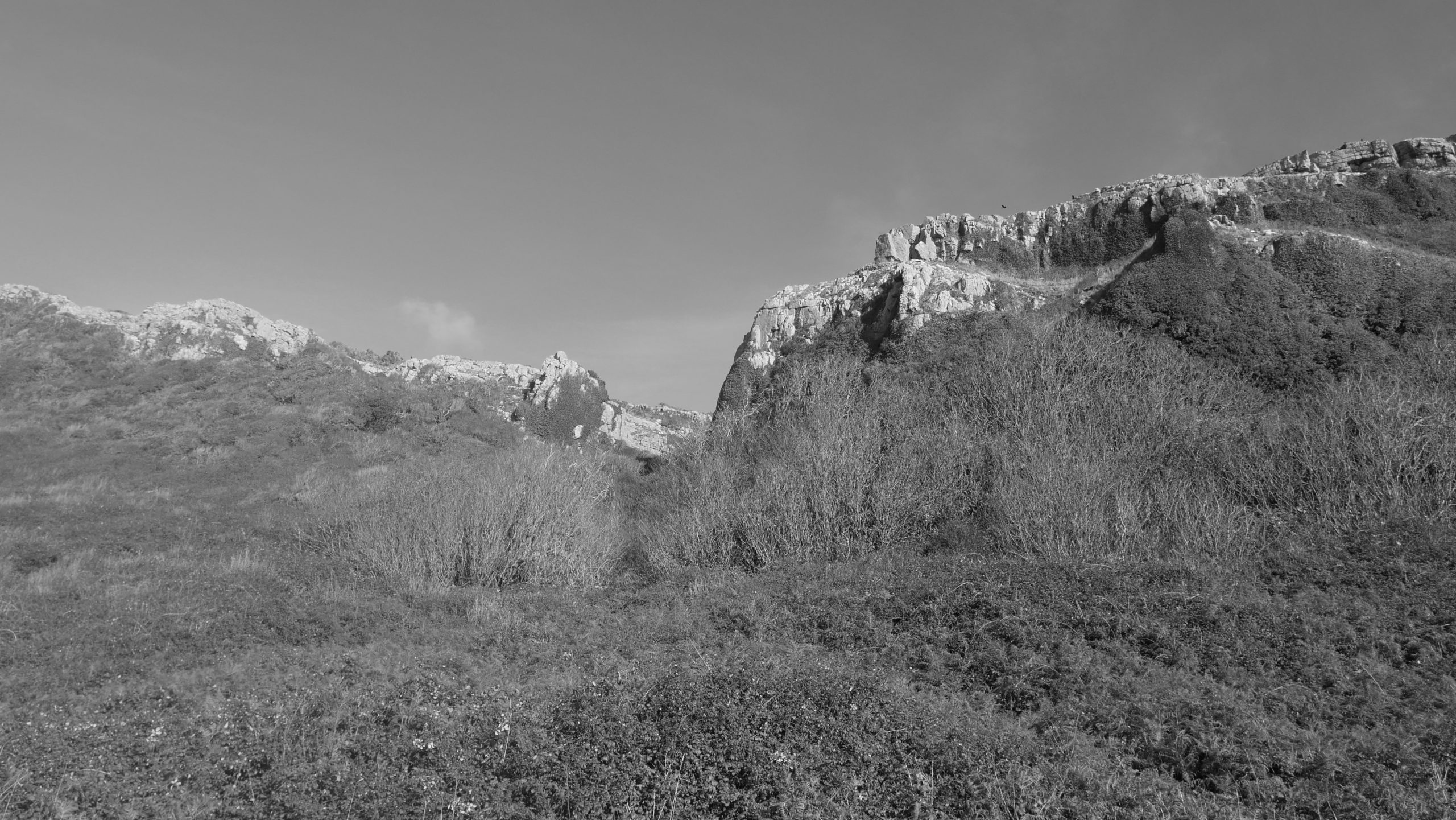 It’s a climb up the escarpment passing an old church. It takes me 5 climbs and 4 rests to get me to the top. Its late autumn the ground is greasy with wet mashed leaves so I am stepping more slowly than usual. Climbing down briefly to Oxwich point , helped by a thoughtfully place rope I get very good views of the coast that I meandered last week.