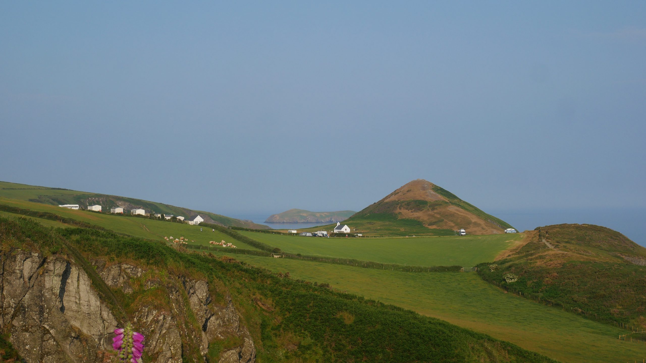 Mwnt; an obvious landmark now I am a mile or so away and Cardigan Island is clearly visible behind it. Its only 0800Hrs approx and I am melting !