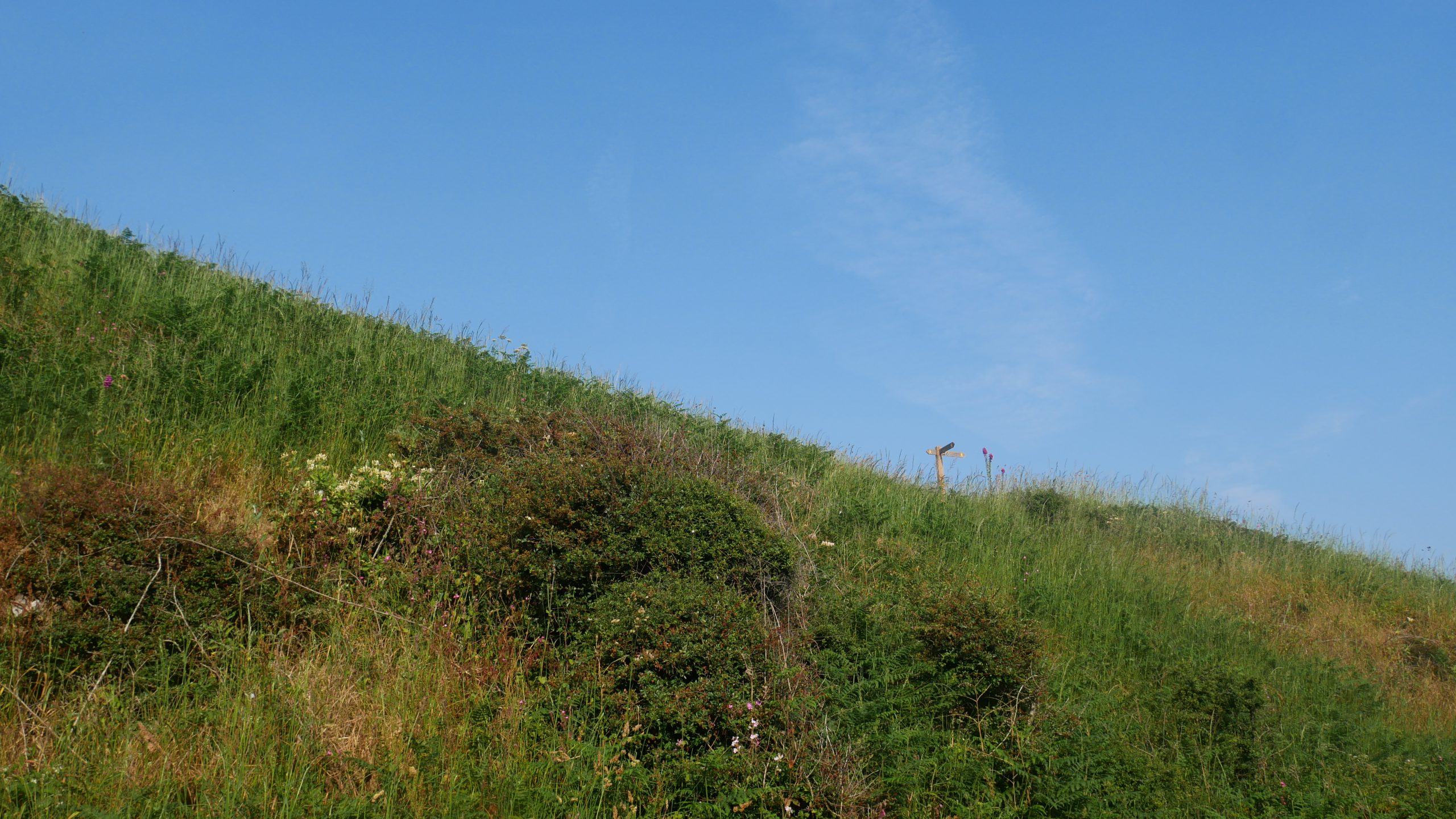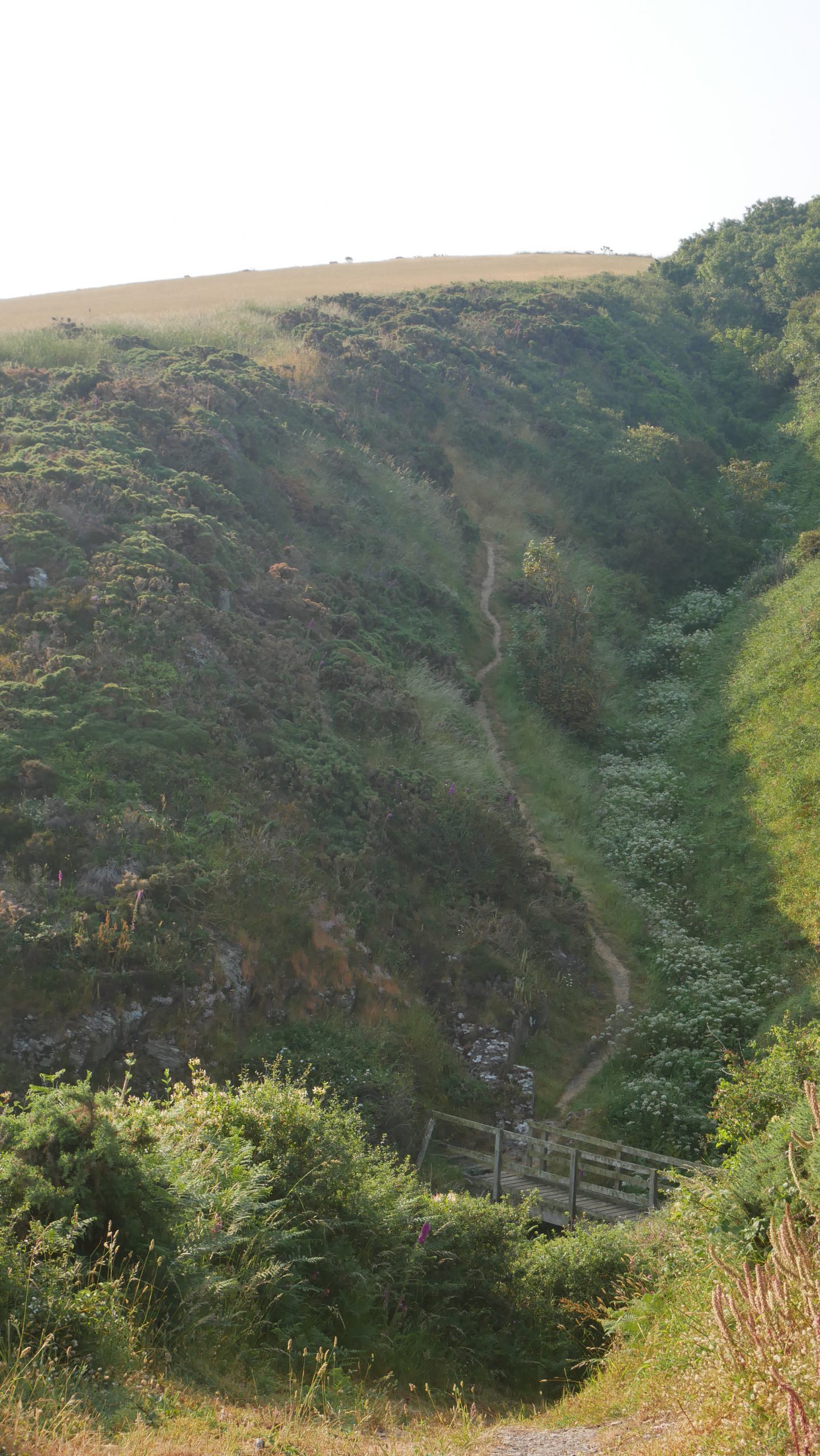 There are a few ups and downs which is making it tough in the heat and several ‘drink stops’ are required. I an in a ‘down’ where the coatal path sign is above top right !