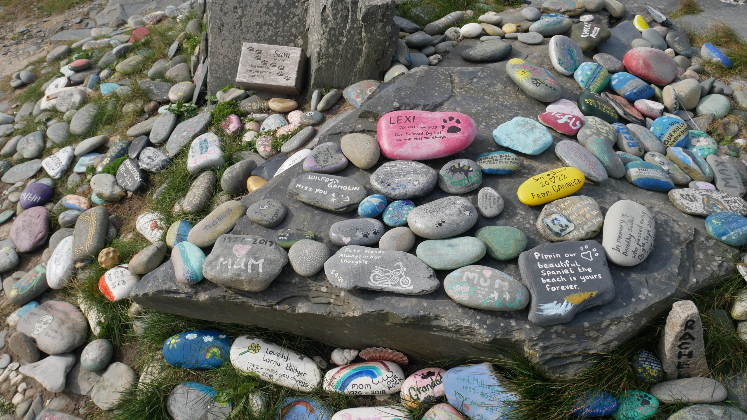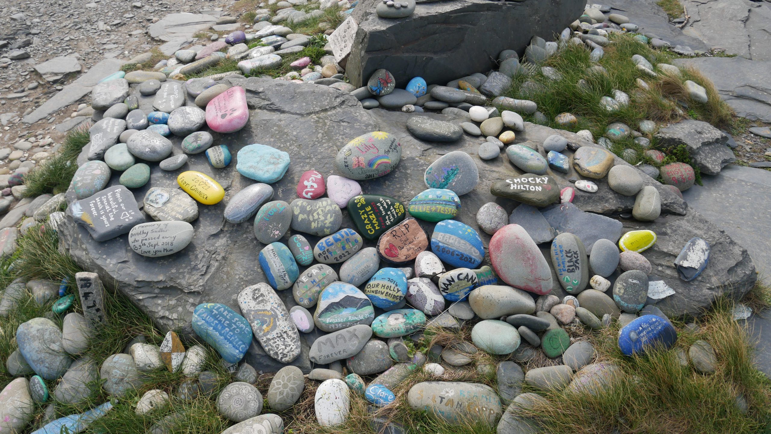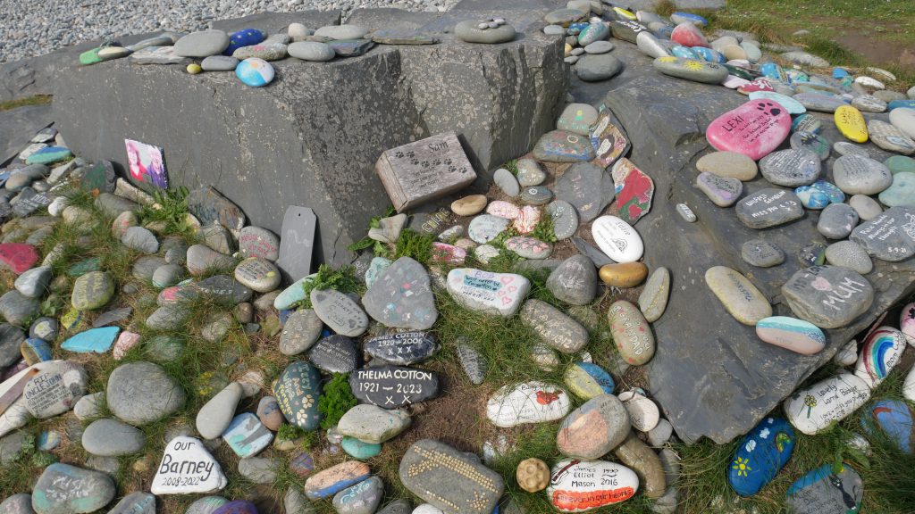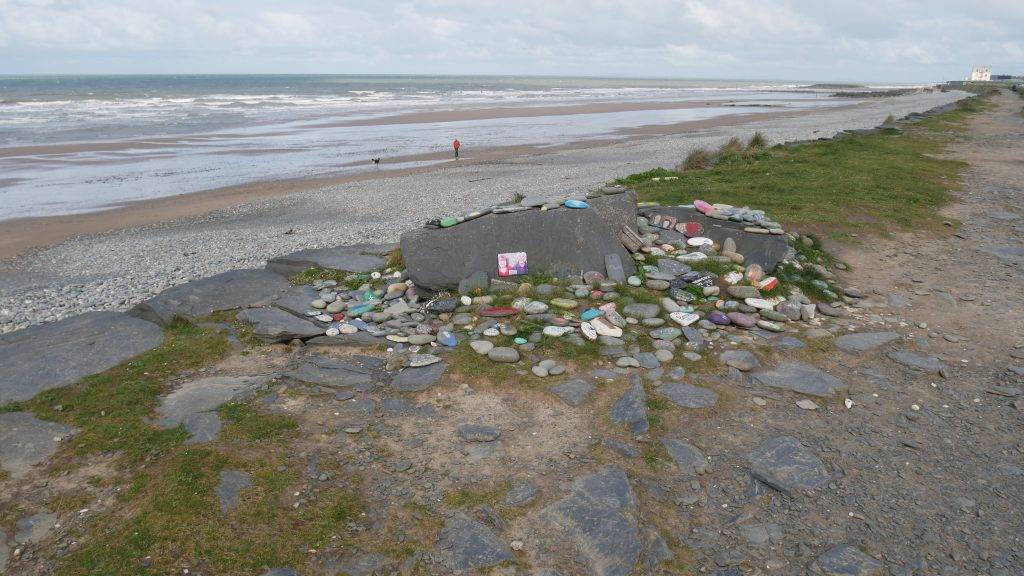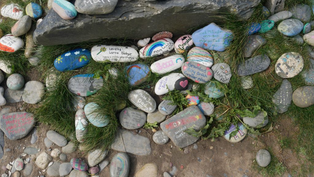 Walking on the sand dunes we proceed for a half mile or so and come across a collection of ‘painted’ pebbles with various messages on them. It is also apparent at this time that the path we are on is be-riddled with deep holes which make good ankle twisting territory.